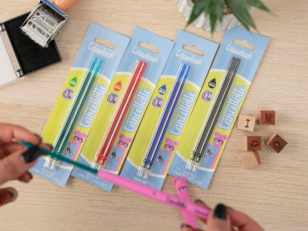 SET 6 Penne a scatto PASTEL – Inchiostro nero(2)blu(2)rosso(2)