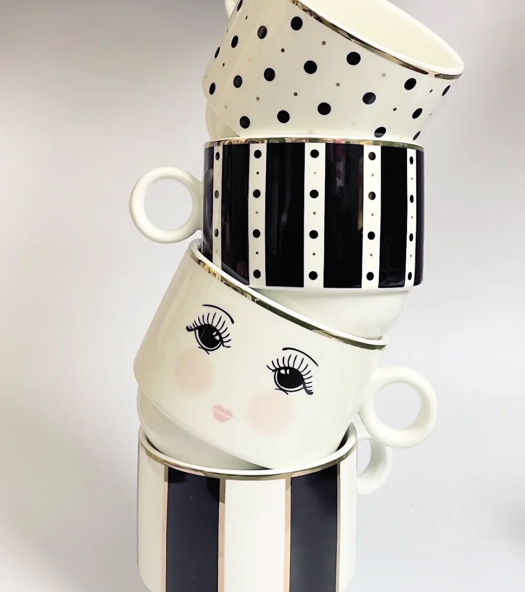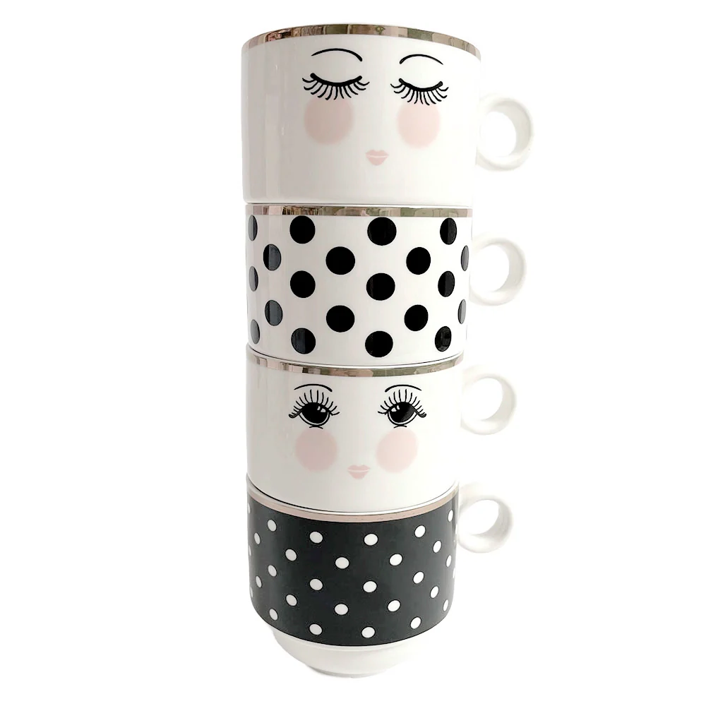 Miss Etoile – Set di tazze bianche/nere pois