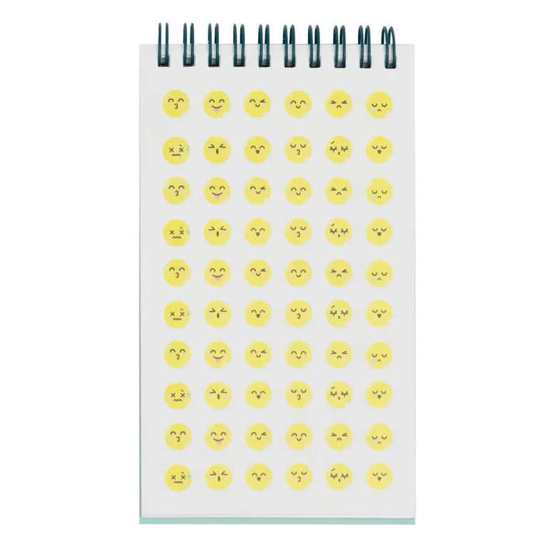 Blocco con rilegatura a spirale che contiene nientemeno che 1000 adesivi al suo interno. In totale, 36 fogli di adesivi di diversi tipi: